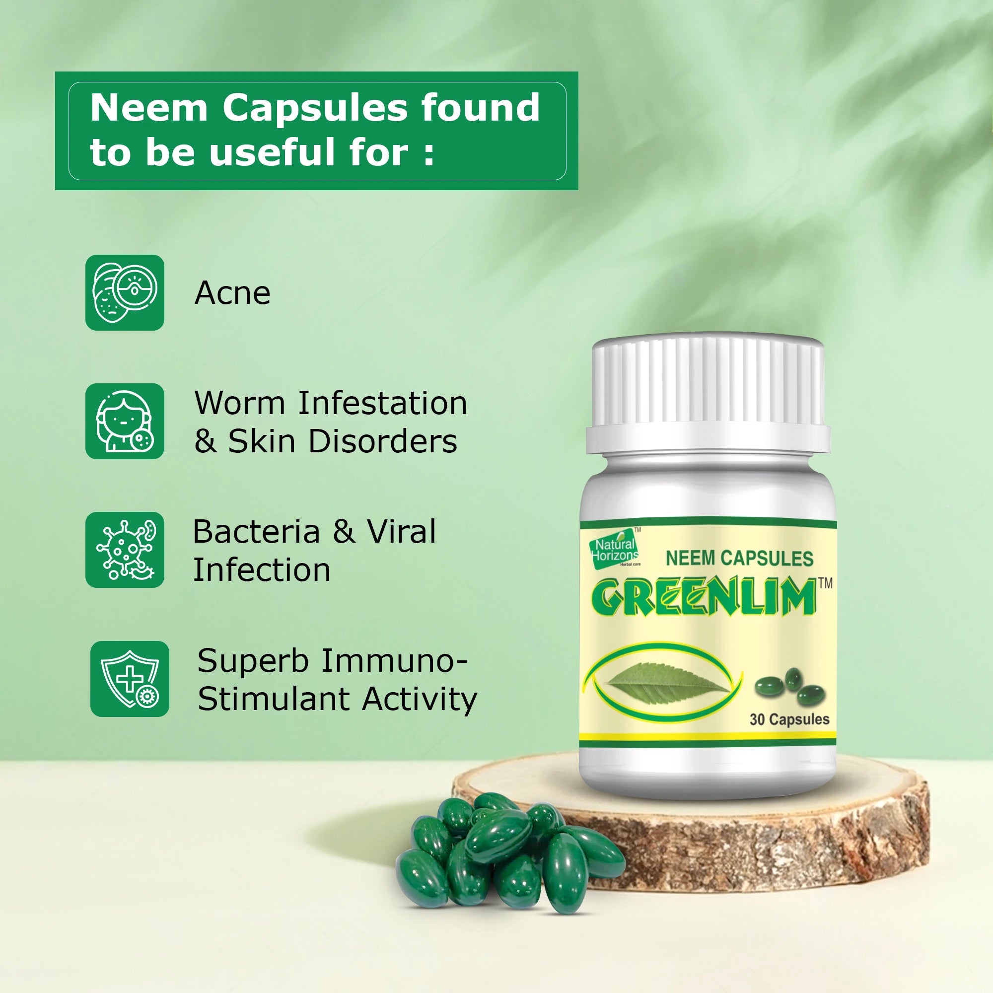 Natural Horizons Neem Capsules harness the power of pure Neem leaf extract, a time-honored Ayurvedic ingredient celebrated for its health-promoting properties. Known as a “provider of good health” since ancient times, Neem supports skin wellness, immunity, and overall body balance.