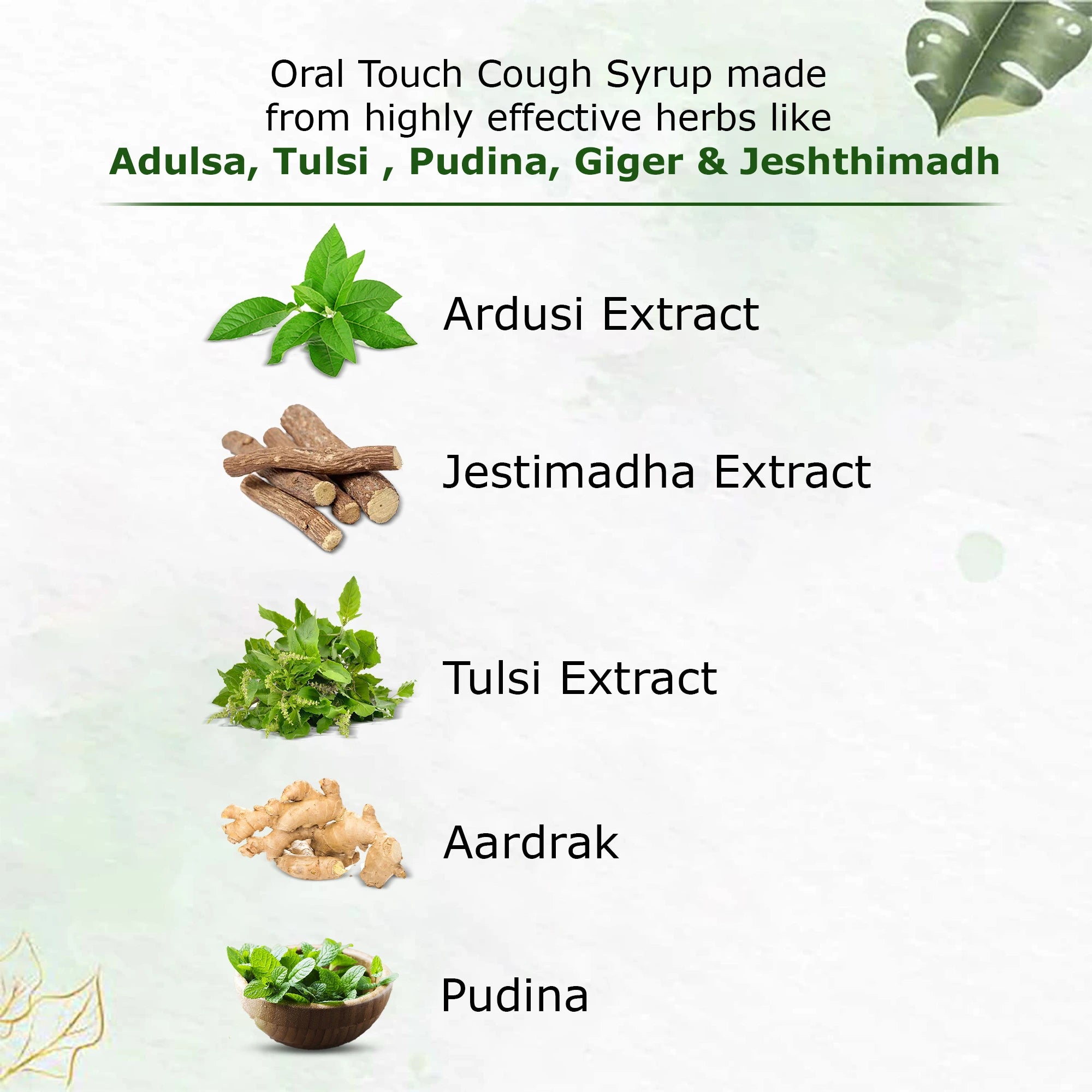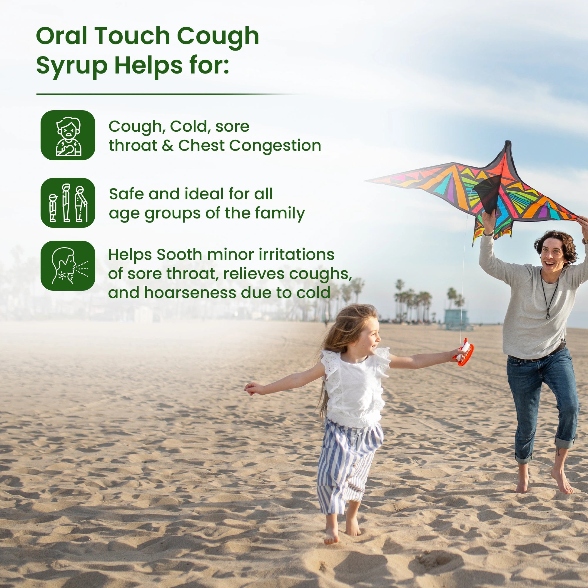 Natural Horizons Oral Touch Cough Syrup is a natural Ayurvedic remedy that provides comprehensive relief from cough, cold, sore throat, and chest congestion. Formulated with the goodness of Adulsa, Tulsi, Ginger, Jeshthamadh, and Pudina, this herbal blend works gently yet effectively to soothe throat irritation, ease dry cough, and support respiratory comfort. Safe for children and adults, it is ideal for the entire family’s wellness during seasonal changes.